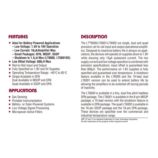 LT6000IDCB#TRPBF Temperature Sensor Chip IC OPAMP GP 1 CIRCUIT 6DFN